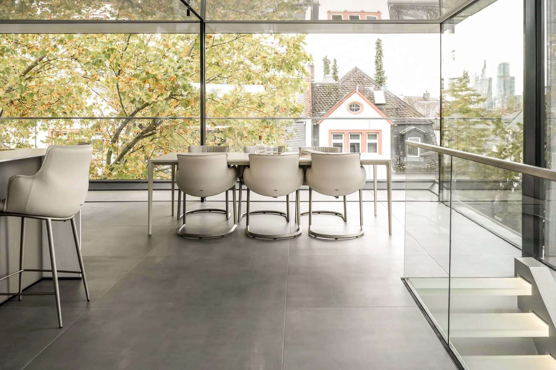 Dieses außergewöhnliche Penthouse mit separatem Studio befindet sich in einem 2024 fertiggestellten Neubauensemble in einer der begehrtesten Wohnlagen Frankfurts. Die Immobilie vereint architektonische Klarheit, modernste Gebäudetechnik und eine kompromisslos hochwertige Ausstattung auf rund 230 m² Wohnfläche und erstreckt sich über drei Ebenen.Bereits beim Eintreten vermittelt die Wohnung ein Gefühl von Großzügigkeit und Exklusivität. Bodentiefe Fensterflächen, klare Linienführung und fließende Übergänge zwischen Innen- und Außenbereichen schaffen ein lichtdurchflutetes, repräsentatives Wohnambiente auf höchstem Niveau. Die durchdachte Grundrissgestaltung ermöglicht eine elegante Trennung von Wohnen, Arbeiten und Rückzug.