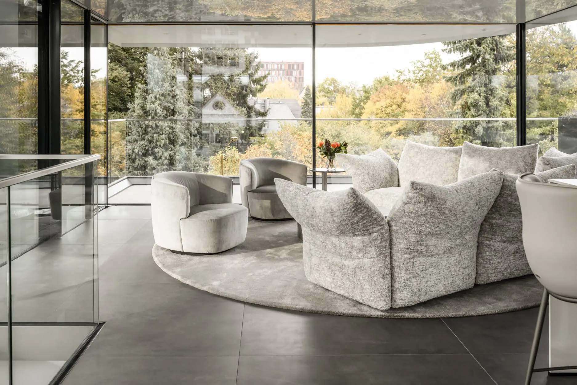 Optional kann das hochwertige Design-Mobiliar übernommen werden.